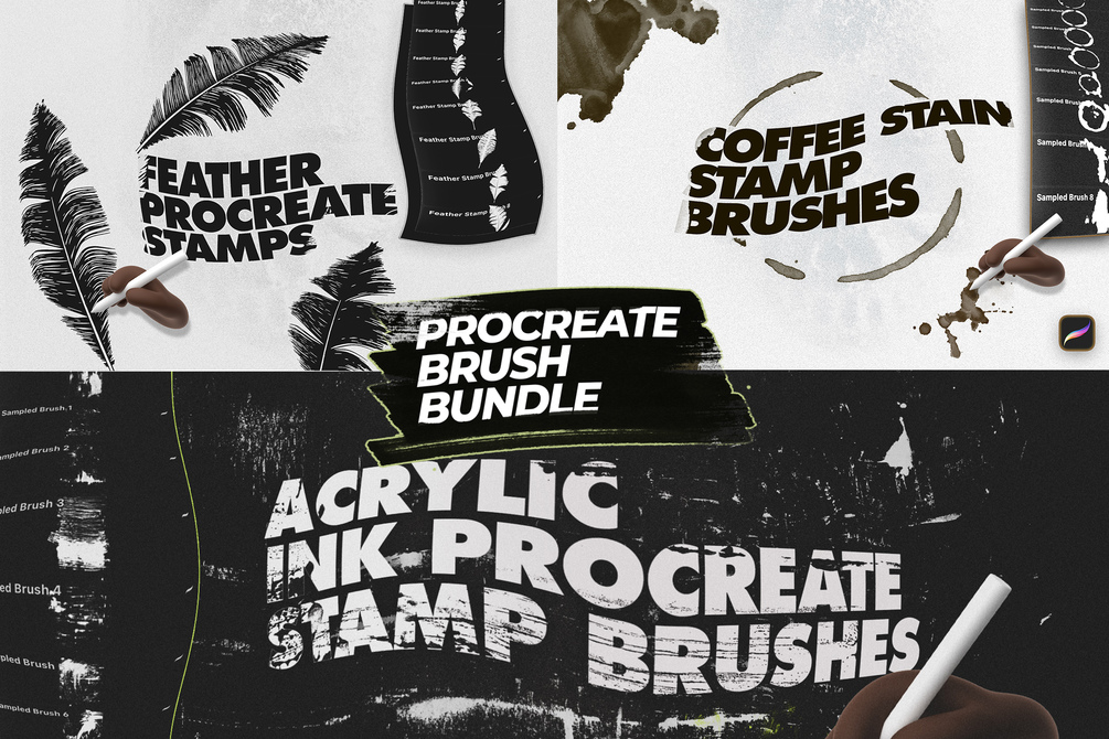 This is a huge pack of Stamp Brushes for Procreate and includes 14 Individual Packs, with an introductory 80% OFF the regular price if all of them were bought separately.
