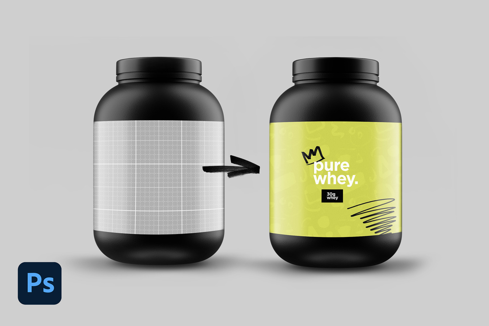 A quick, easy PSD mockup for you guys here, its a high resolution photoshop mockup of a whey protein supplement container, with editable label.